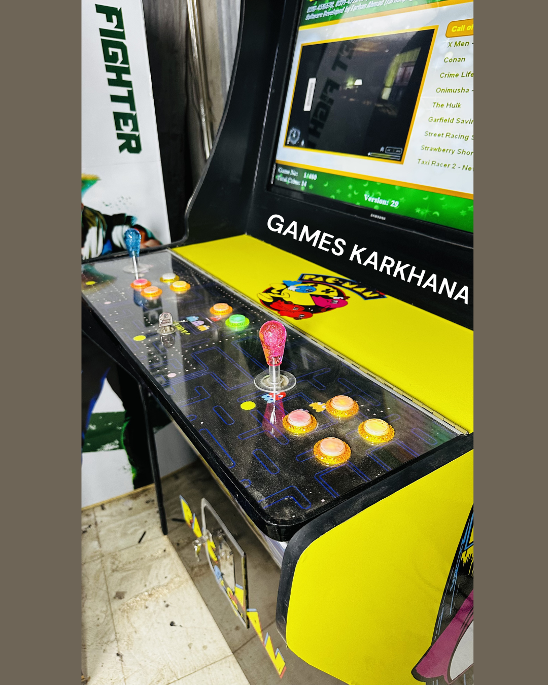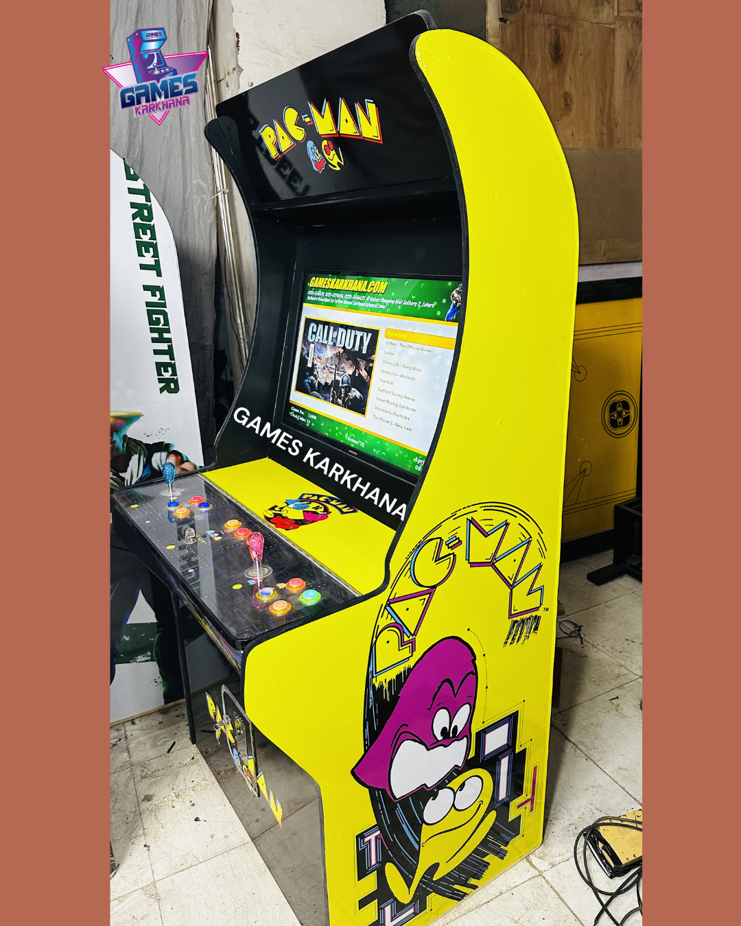Pac-Man Theme Arcade Game (32 Inch LCD), a perfect combination of retro nostalgia and modern gaming performance. Designed for both home entertainment and commercial use in Pakistan, this premium arcade machine features a vibrant 32-inch LCD screen that delivers sharp visuals and smooth, responsive gameplay for an authentic arcade experience.